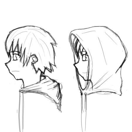 рисунки аниме парни в капюшоне для срисовки