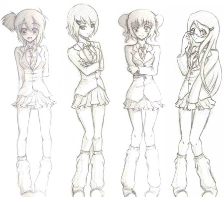 Зарисовки аниме девушек в полный рост
