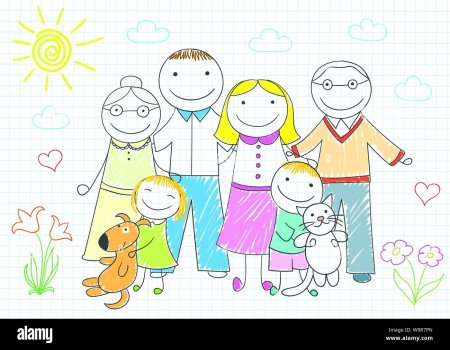 Рисунок семьи мама папа сын бабушка и дедушка