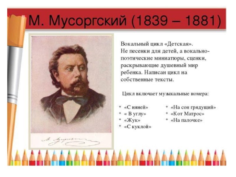 Модест Петрович Мусоргский вокальный цикл детская