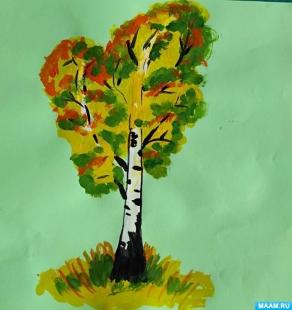 Рисование осенней березы для ср.гр