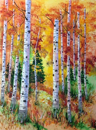 Осенние березы акварелью