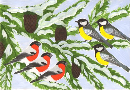 Рисунок зимующие птицы на конкурс
