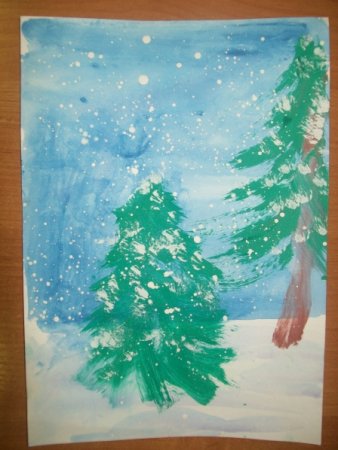 Рисование зубной щеткой зима