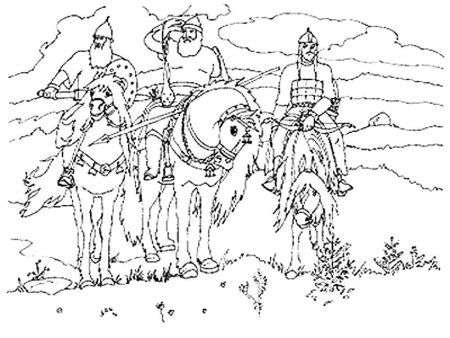 Раскраска три богатыря Васнецов