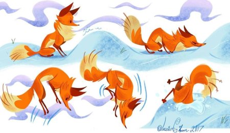 Рисование зимних лиса