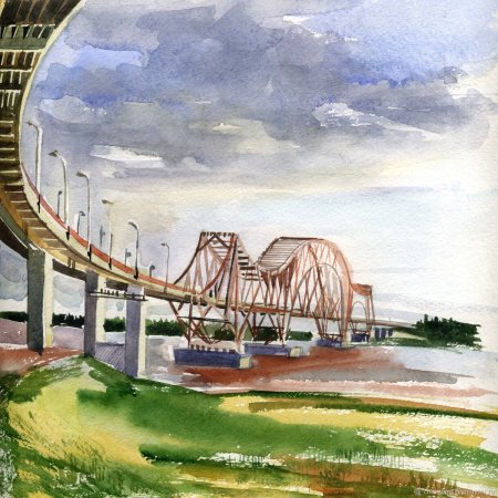 Саратовский мост акварель