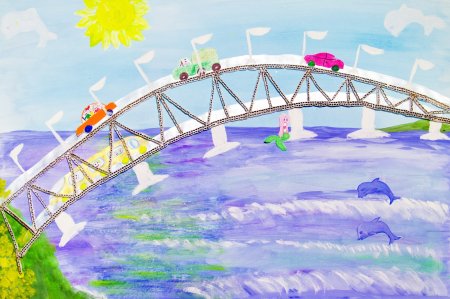 Детские рисунки моста через Волгу