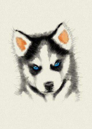 "Очаровательный детский рисунок с изображением собаки хаски - идеальное украшение для детской комнаты или подарок маленькому художнику. Нежные краски и простые линии создают милую картину, которая заполняет помещение теплотой и радостью. Игривый взгляд и энергичная поза собаки передают ее характер и неподдельную дружелюбность. Этот рисунок станет настоящим сокровищем для каждого ребенка, который любит животных и мечтает о самом верном друге."