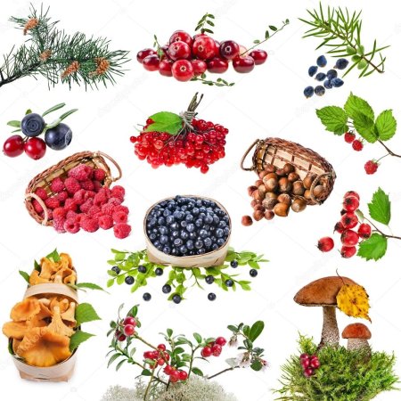 Грибы ягоды на прозрачном фоне