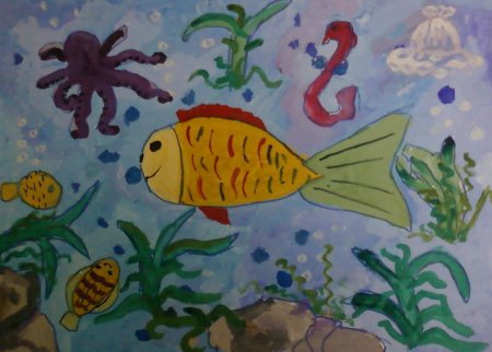 Взгляните на детский рисунок, который открывает перед нами подводное царство. Яркие и живые краски захватывают взгляд, создавая впечатление погружения в мир глубин океана. В аквариуме изображены разнообразные морские обитатели: рыбы, раки, кораллы и другие существа, каждое со своими яркими оттенками и уникальным обликом. Этот прекрасный рисунок призывает нас отправиться в волшебное путешествие по подводному миру, полному загадок и удивительных красот.