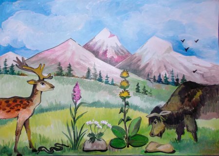 В детском рисунке "Природа Кузбасса" изображены характерные черты этого региона, включая горы, реки, леса и разнообразную флору и фауну. Рисунок передает красоту и уникальность природы Кузбасса, а также ее значимость для экологической среды и общества в целом. В детской творческой интерпретации видны яркие цвета и радостное настроение, отражающие любовь и восхищение автора к своему родному краю.