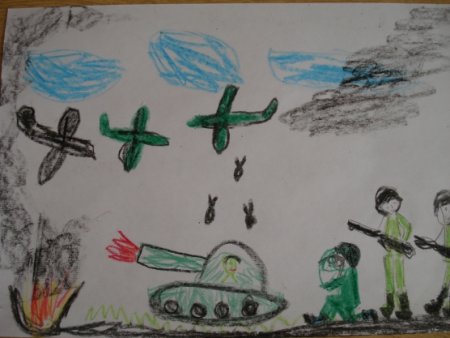 Детский рисунок "Война глазами ребенка" передает неподдельные эмоции и взгляд на мир во время конфликтов. В нем содержится глубокий символизм и простота, отражающие невинность и очарование детства, а также страх и печаль, связанные с реальностью войны. Этот рисунок заставляет задуматься о том, как важно сохранить мир и безопасность для детей, чтобы им не пришлось испытывать подобные ужасы.