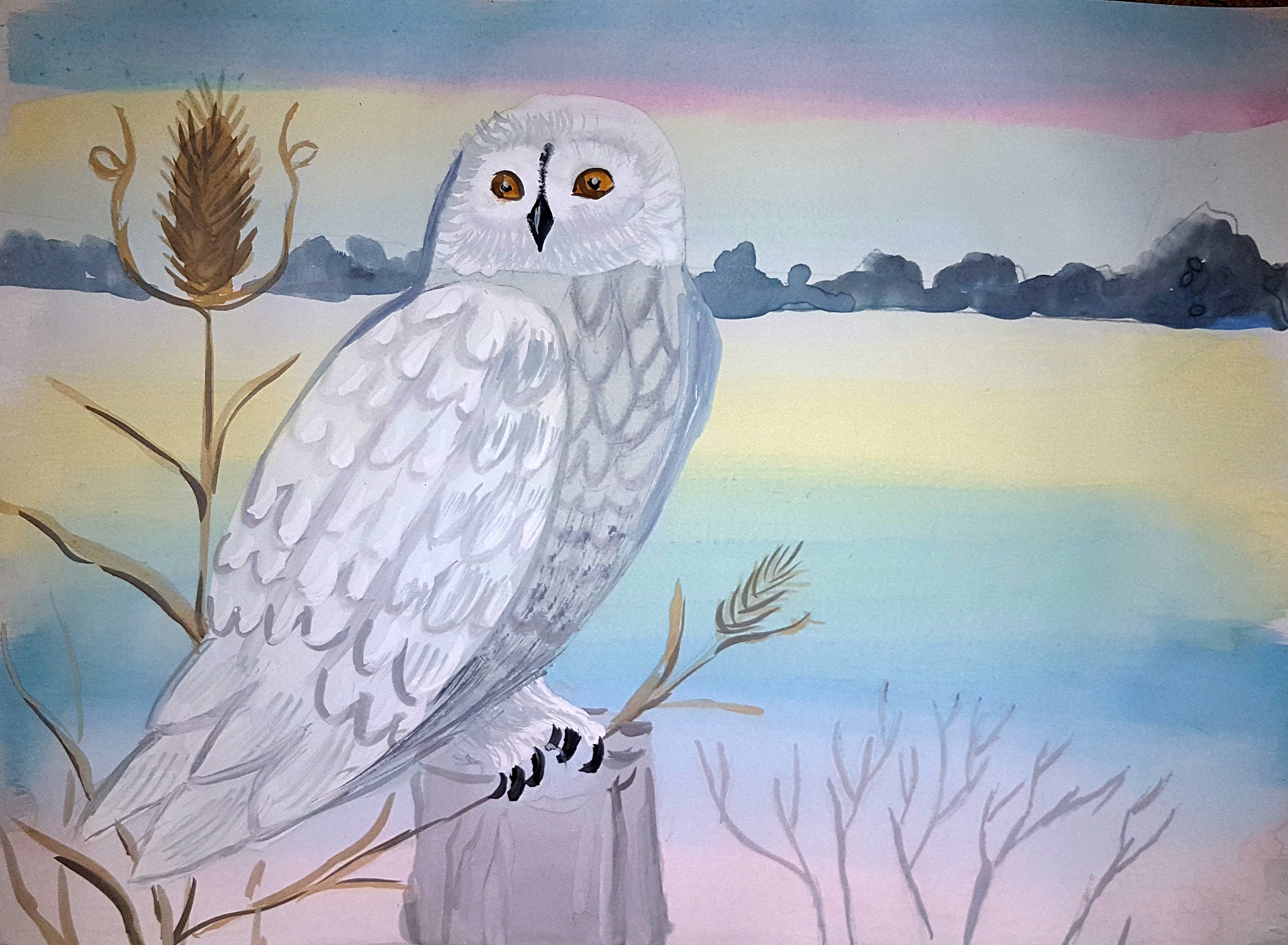Белая Сова гуашью
