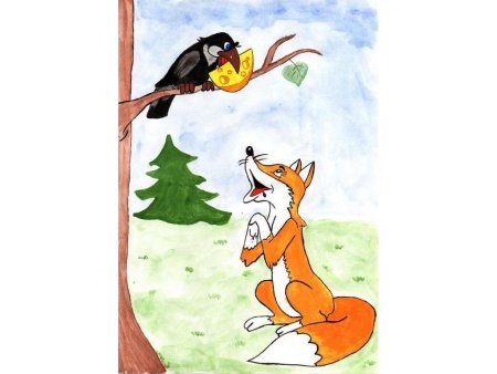 Рисунок к басне Крылова ворона и лисица