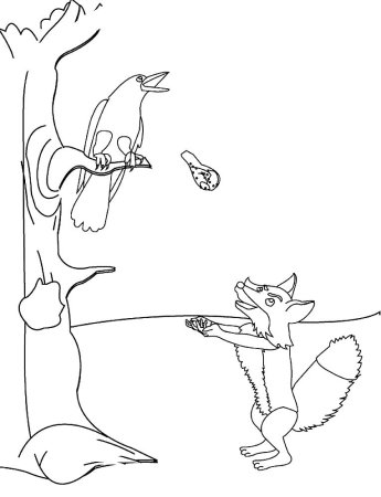 Лиса и ворона басня Крылова раскраска
