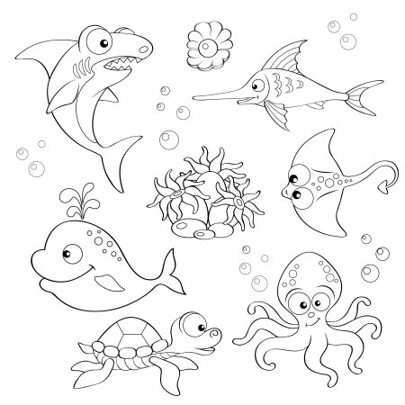 Раскраска обитатели морей и океанов