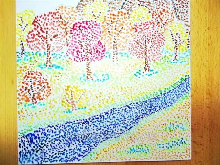 Осенний пейзаж в технике пуантилизм для детей