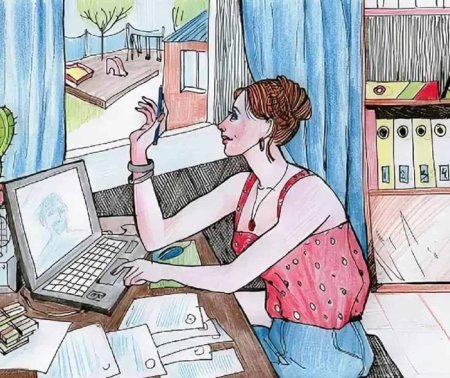 На детском рисунке изображена мама, которая работает в банке. Иллюстрация передает образ молодой и энергичной женщины, занятой своей профессиональной деятельностью. Она изображена за рабочим столом с компьютером и телефоном, что символизирует ее активную работу в банковской сфере. Рисунок показывает, что даже мамы могут быть успешными и заниматься интересной и значимой работой.