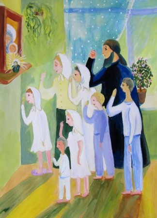 Православная семья молится