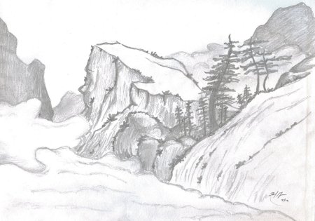 Пейзаж гор карандашом