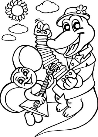 Крокодил Гена и Чебурашка раскраска