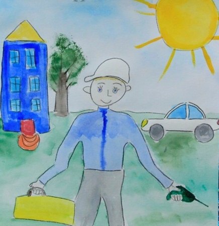 Мир детских рисунков открывает нам удивительные и милые миры фантазии. Один из таких миров создан маленькими художниками, чье воображение не знает границ. Эти рисунки рассказывают историю о строительном мире через глаза детей. Мы видим, как мой папа, с помощью своего инструмента, создает здания, дома и сооружения, которые приносят комфорт и радость людям. В этих простых линиях и ярких красках мы видим не только детскую любовь к своему отцу, но и почтение к труду и строительству, которое играет важную роль в нашей жизни. Детские рисунки "Мой папа строитель" - это искренняя и трогательная песня о семье, творчестве и значимости каждого занятия в жизни каждого из нас.