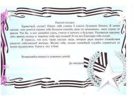 Письмо солдату от школьника юнармейца