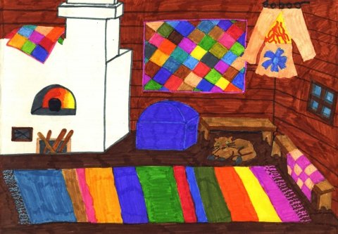 Уникальное и уютное детское убранство, вдохновленное русской избой. Идеально подходит для создания атмосферы тепла и игры в настоящую деревенскую жизнь. Компактный размер и яркие цвета делают его привлекательным для маленьких исследователей. Позвольте вашему ребенку погрузиться в волшебный мир русской культуры с помощью этого замечательного детского рисунка.