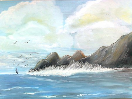 Морской пейзаж гуашью