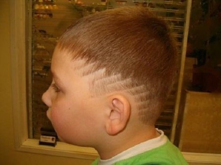 ![Стрижка с молнией для мальчика на светлых волосах]()
