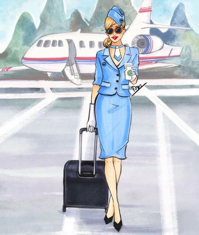 Детский рисунок "Стюардессы" - милый и яркий арт, на котором изображены улыбающиеся стюардессы в их характерных форменных костюмах. Этот рисунок подойдет как для оформления детской комнаты, так и для использования в различных творческих проектах, открытках или детских книжках. Он способен привлечь внимание детей своей нежной цветовой гаммой и простыми, но выразительными линиями, а также вносит веселое настроение и визуальную радость в любое пространство.