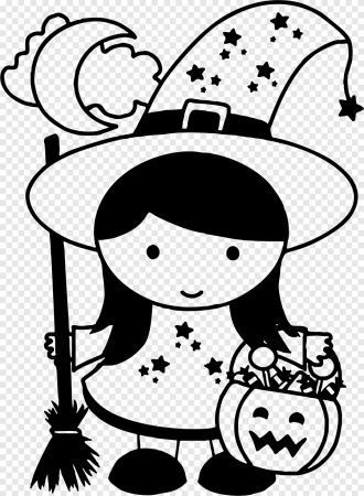Раскраска ведьма на Хэллоуин