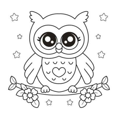 Совенок с сердечком раскраска