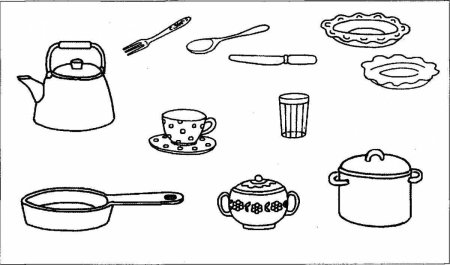 Посуда. Раскраска