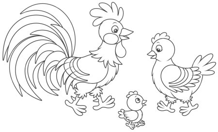 Курица петух цыплята раскраска