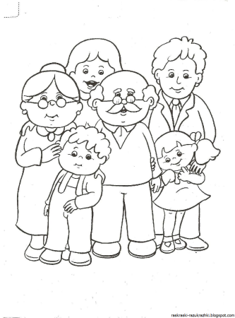 Раскраска семья с бабушкой и дедушкой