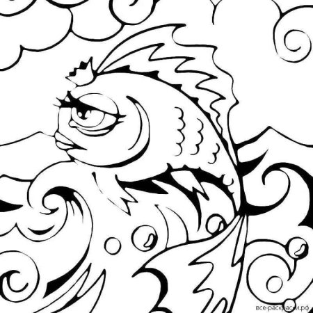 Золотая рыбка раскраска к сказке о рыбаке и рыбке