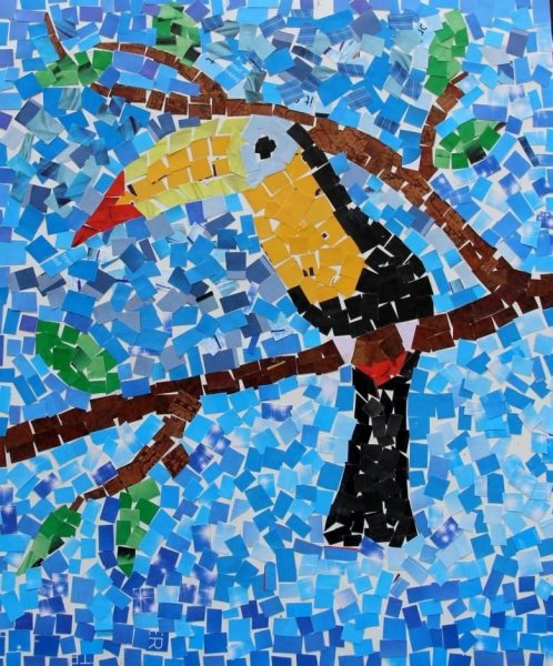 Золотая рыбка Обрывная мозаика из цветной бумаги