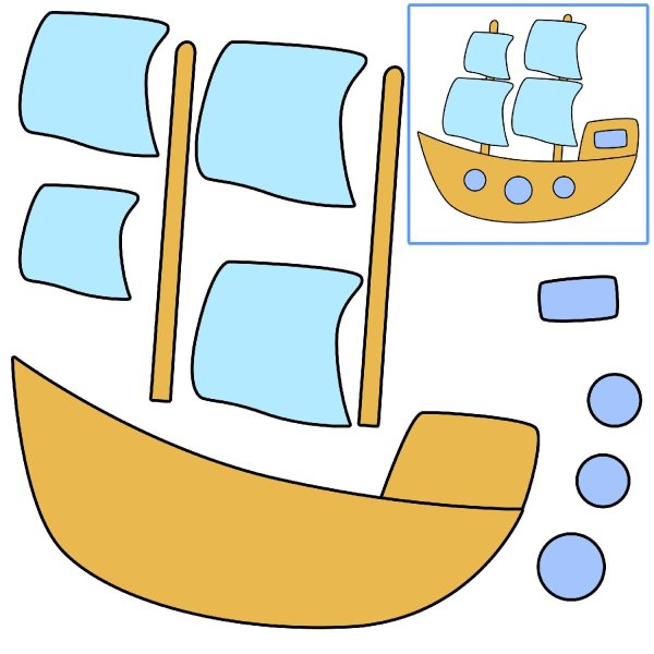 Шаблоны аппликации для дошкольников Пароходик