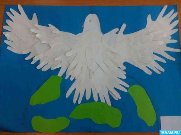 Аппликация голубь мира из ладошек
