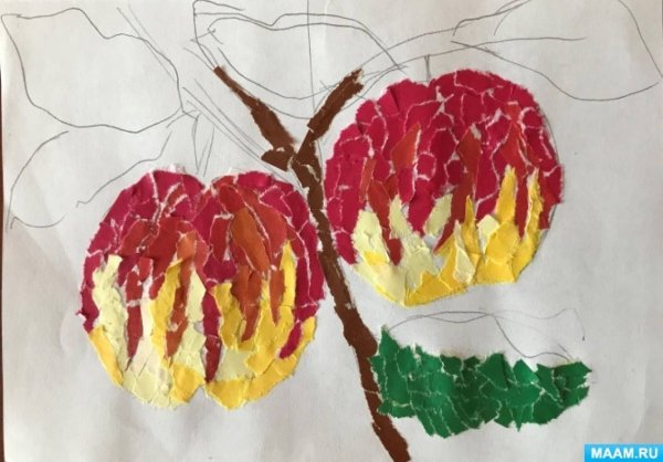 Аппликация Обрывная техника яблоко