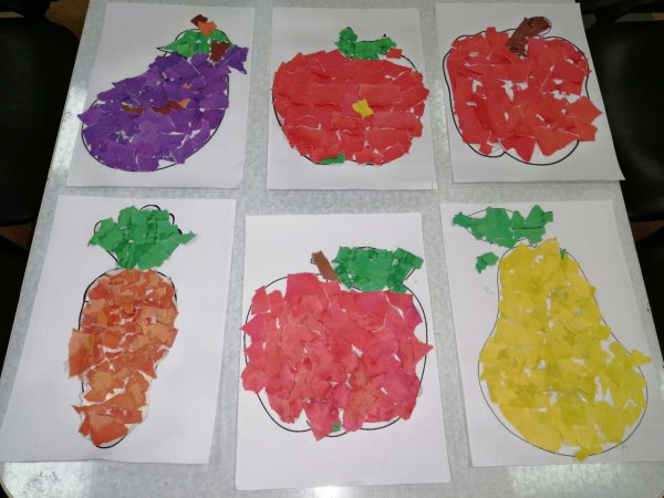Обрывная аппликация овощи в подготовительной группе