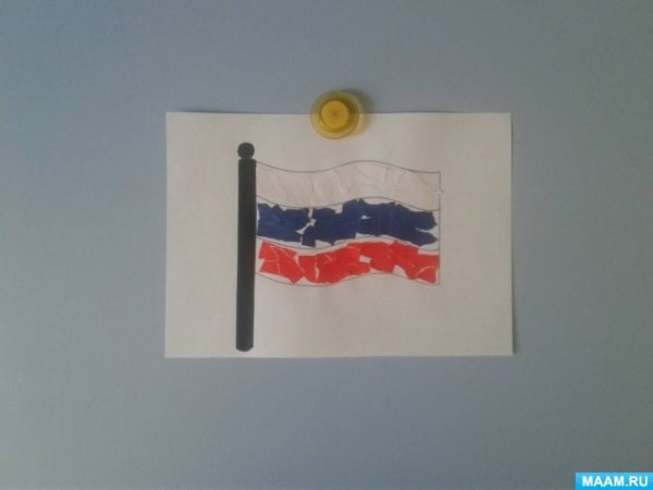 Обрывная аппликация флаг России младшая группа