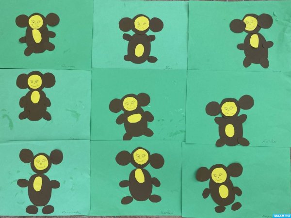 Аппликация в детском саду на тему Чебурашка