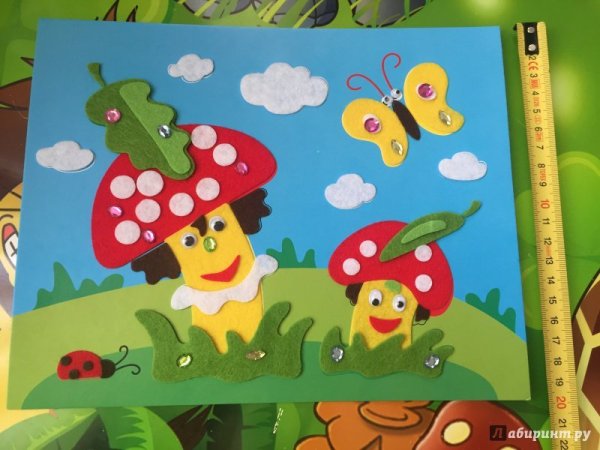 Аппликация из цветной бумаги грибная Поляна