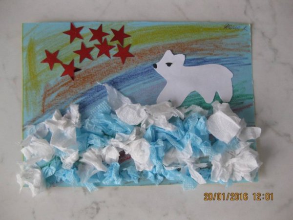 Аппликация белый медведь и Северное сияние