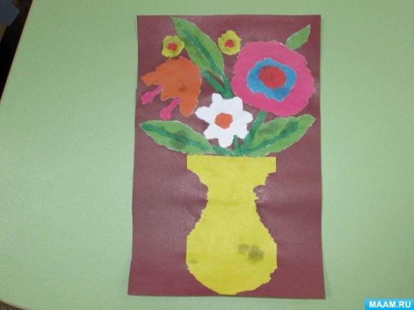 Обрывная аппликация ваза с цветами