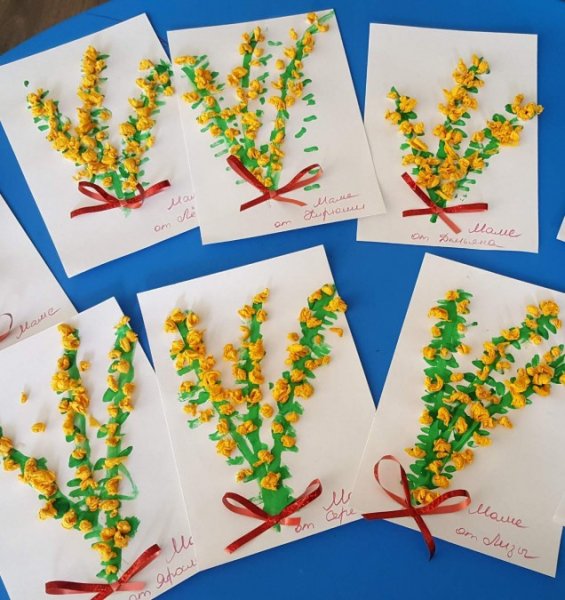 Цветы в детском саду к 8 марта Мимоза средняя группа