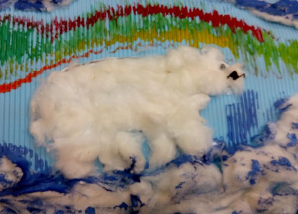 Аппликация белый медведь из ваты
